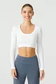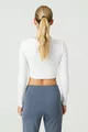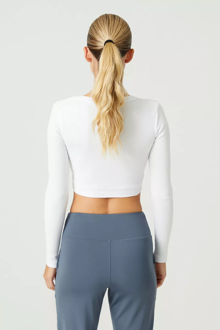 x Melodi Beyaz Pamuklu Fitilli Uzun Kollu Crop Spor Bluz Long Sleeve