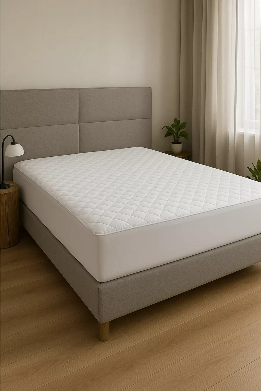 Yatak Alezi Pamuklu Kapitone Fitted Full Kenar Sıvı Geçirmez Yatak Koruyucu Beyaz