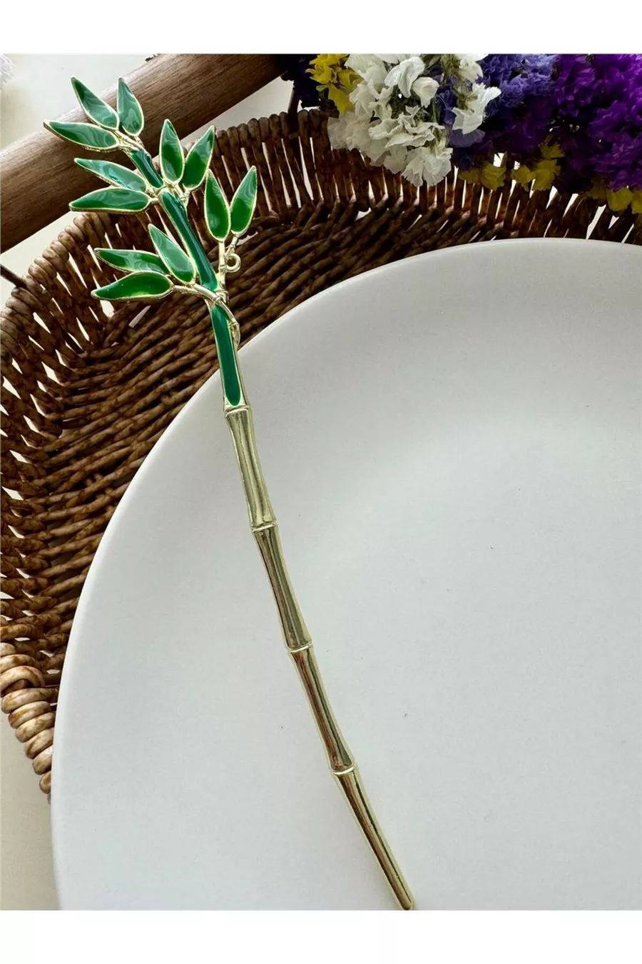 Yeşil Bambu Yaprağı Japon Topuz Çubuğu