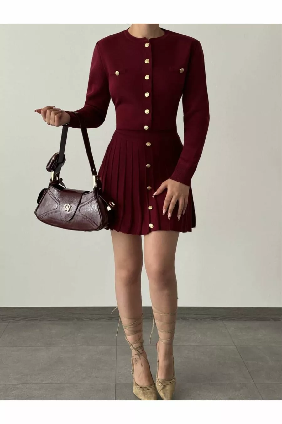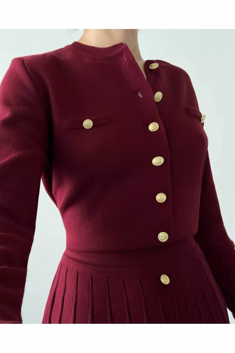Yeni Model- Rozelinde frense Triko Düğmeli Etekli Takım .