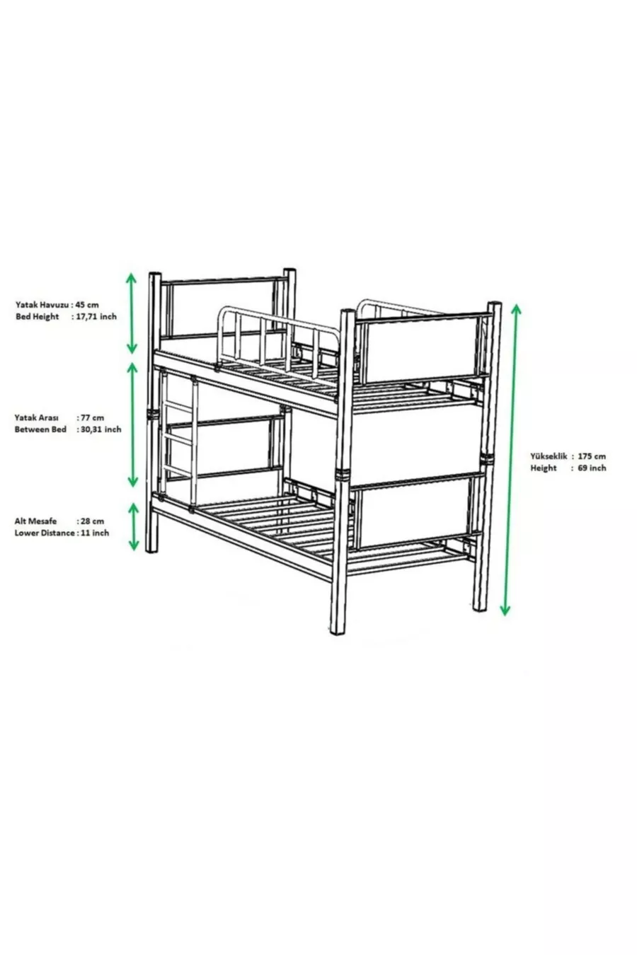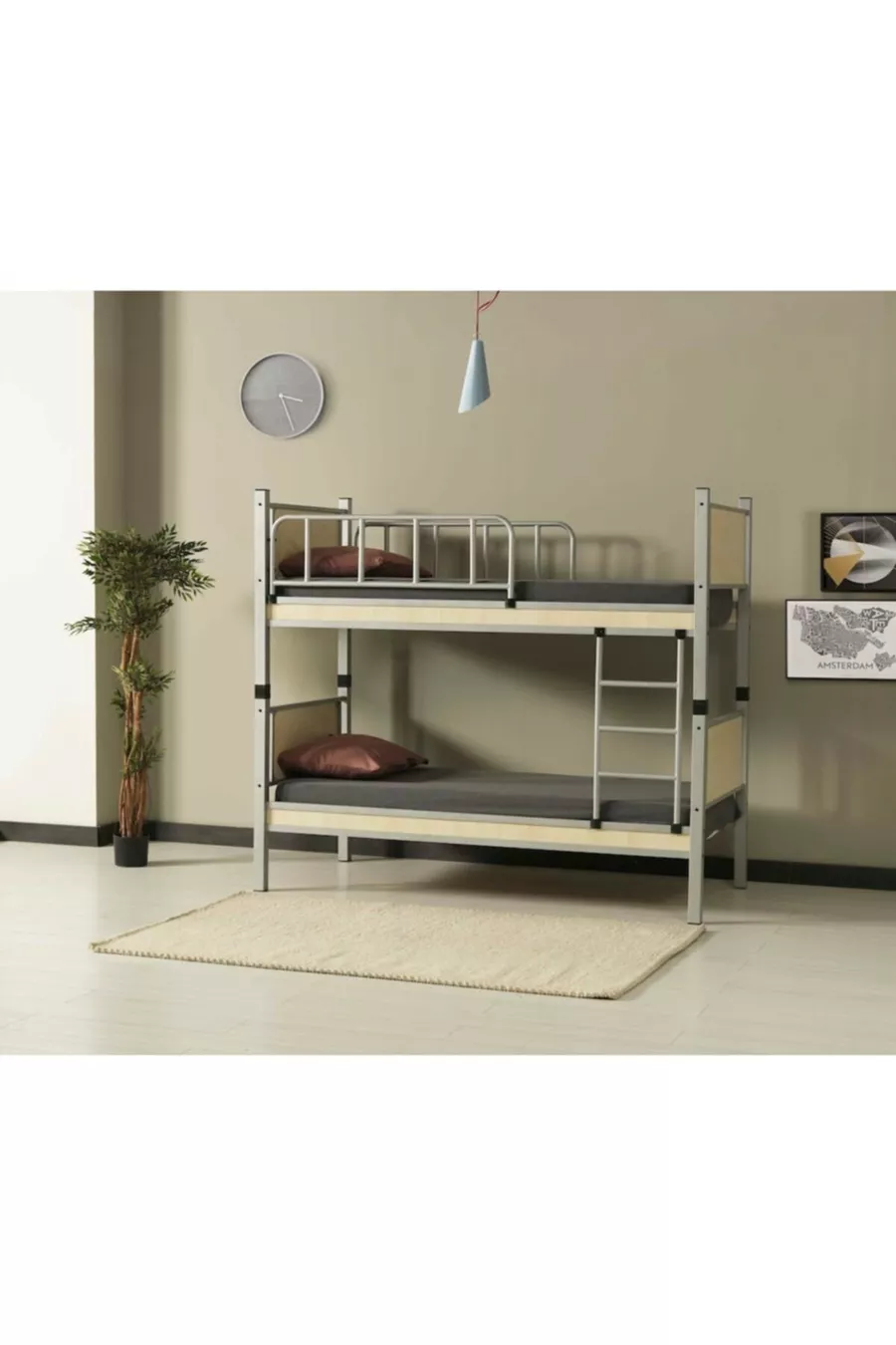 Yurt Genç Çocuk Odası Ahşap Başlıklı Metal Ranza