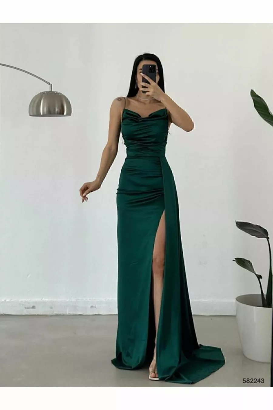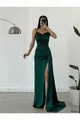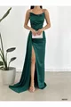 zümrüt Saten Ön Pileli Abiye Elbise