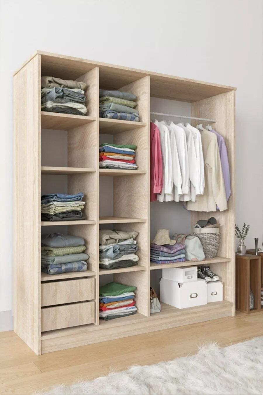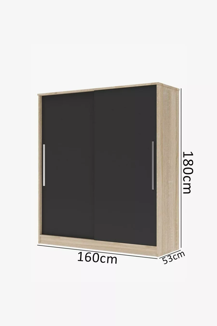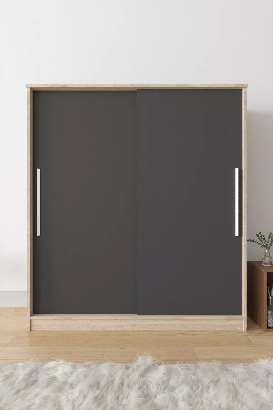 Zambak Sürgülü Dolap Çok Raflı Çekmeceli Askılı Antrasit Gri Gardırop